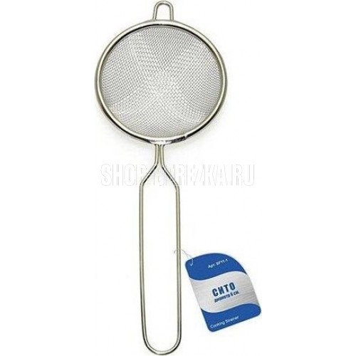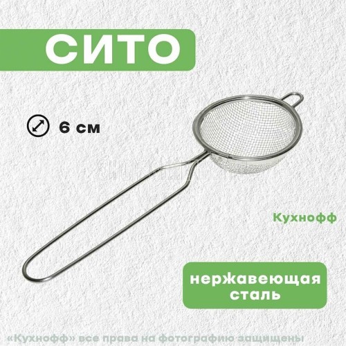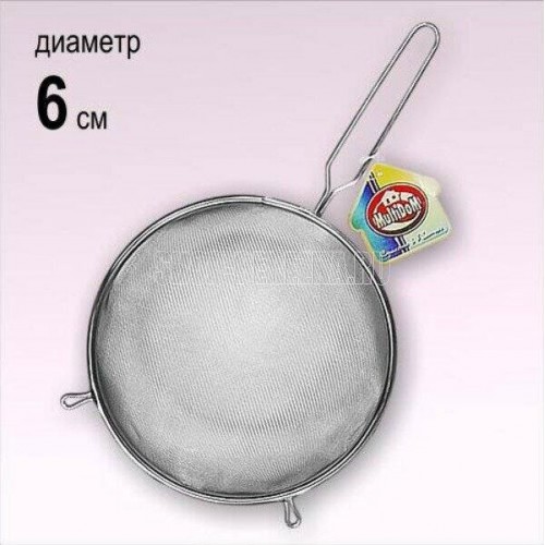 Сито – необходимый аксессуар, который пригодится на любой кухне. Его можно использовать для заваривания чая, процеживания компотов, отваров трав. Небольшой диаметр изделия позволяет использовать его с кружками и чашками. Сито из нержавеющей стали не вступает в реакцию с продуктами и не выделяет неприятного запаха при использовании. Для удобства использования на ободке есть специальная петелька, а конструкция ручки предусматривает возможность повесить сито на крючок для хранения. Перед первым применением и после каждого использования рекомендуется вымыть губкой или мягкой щёткой, можно с жидким моющим средством, сполоснуть проточной водой и просушить. Можно мыть в посудомоечной машине. Изготовлено из коррозионностойкой (нержавеющей) стали. Диаметр рабочей части 6 см, общая длина 18,5 см.