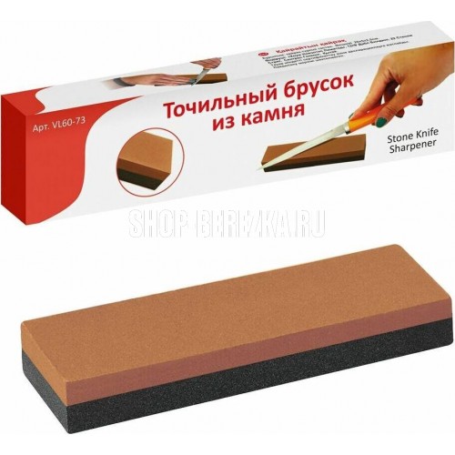 Точильный брусок из абразивного материала – универсальное средство для заточки лезвий ножей и ножниц. Материал, из которого изготовлен брусок, представляет собой абразив с цементирующей связкой. Брусок подойдет для всех видов кухонных ножей, нуждающихся в заточке. Инструкция по использованию: смочите камень, зафиксируйте нож под углом 20-23 градусов, расположите поперек бруска. Следите за тем, чтобы кромка была всегда перпендикулярна направлению движения. Разверните острие от себя и водите по направлению к себе с одинаковым нажимом. Заточите нож по всей длине, затем переходите к второй стороне. После использования промойте в проточной воде и просушите. Изготовлено из абразивного камня. Размер 20х5х2,5 см. Зернистость, сер.180/Оранж400 grit