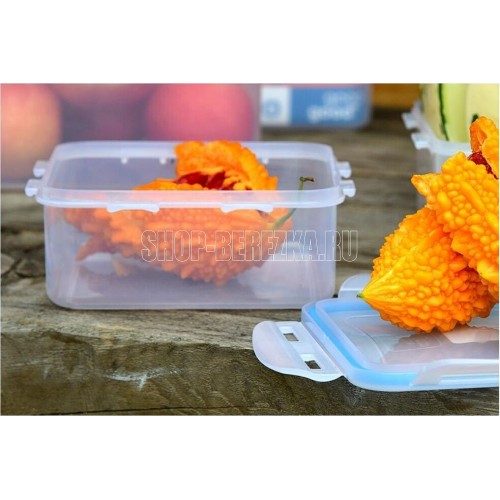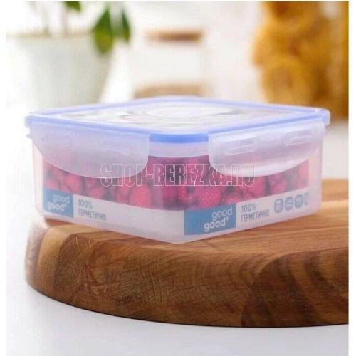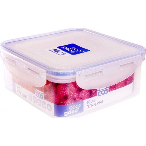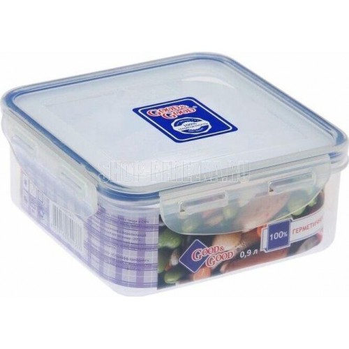 Контейнер пищевой герметичный объемом 0,9л (размер 155х155х65мм) Good&Good изготовлен из высококачественного полипропилена, который не содержит Бисфенол-А. Контейнер герметичный использует блокирующие клипсы с четырех сторон и силиконовый уплотнитель, что делает его 100% герметичным. Контейнер для СВЧ обеспечивает длительное сохранение свежести продуктов. Контейнер для еды Good&Good предназначен для хранения, заморозки и транспортировки различных продуктов, в том числе и жидкости. Пластиковый контейнер с крышкой можно использовать как ланч-бокс для дома, в офисе, в школе и на природе. Контейнер для хранения продуктов можно использовать в СВЧ Печи. Герметичный контейнер подходит для холодильных и морозильных камер. Пластиковый контейнер не деформируется при мытье в посудомоечной машине. Температурные режимы для использования в СВЧ, морозильной камере: +125 -24.