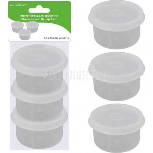Многофункциональные контейнеры для хранения пригодятся вам не только на кухне, но и для использования под разные домашние мелочи. Подходят для: порционного хранения соусов, джемов, варенья; хранения косметических средств; складывания пуговиц, булавок, бисера и других принадлежностей. Контейнеры плотно закрываются, поэтому их удобно брать в дорогу, на работу или на пикник. Занимают мало места в холодильнике и на полках, легко помещаются в сумку. Емкости прозрачные, что позволяет видеть содержимое. Рассчитаны на многоразовое использование. Изготовлены: крышка из пластмассы (полиэтилен), контейнер из пластмассы (полипропилен). Объем 63 мл.