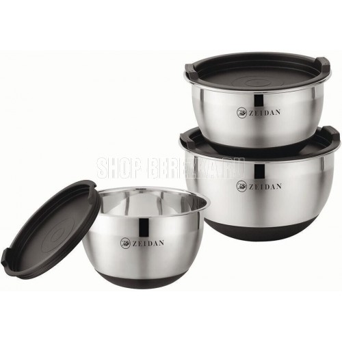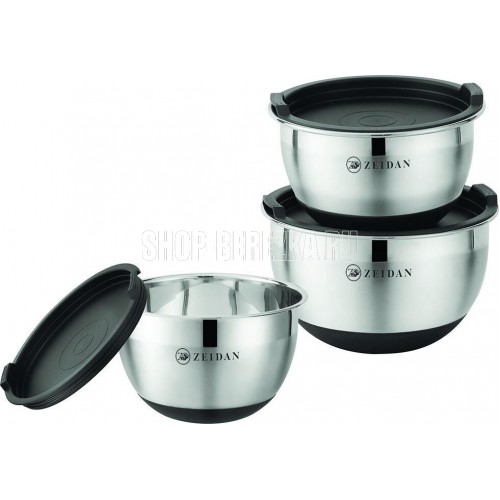Набор мисок ZEIDAN Z-11137, 6 предметов , Набор мисок, 6 предм., высококачественная нержавеющая сталь - 0.5 мм, (5 МИСОК С КРЫШКАМИ: 1,2 Л (d16 см), 2,5 Л (d20 см), 4,2 Л (d24 см), крышки – высококачественный пищевой пластик, нескользящее силиконовое дно. Подарочная упаковка.