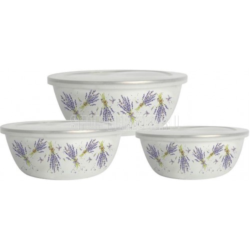 Набор мисок, 6 предм. (3 МИСКИ С КРЫШКАМИ: 0,85 Л (d16 см), 1,4Л (d18 см), 2,6 Л (d20 см) с внутренним эмалированным покрытием), эмалированная сталь, внешнее покрытие - эмаль с рисунком.