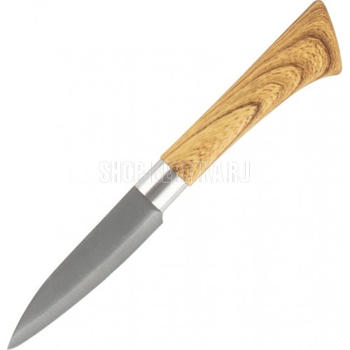 Длина лезвия: 9 см Толщина стали: 1,2 мм Пластиковая рукоятка "под дерево" Материал: нержавеющая сталь 2CR14, пластмасса