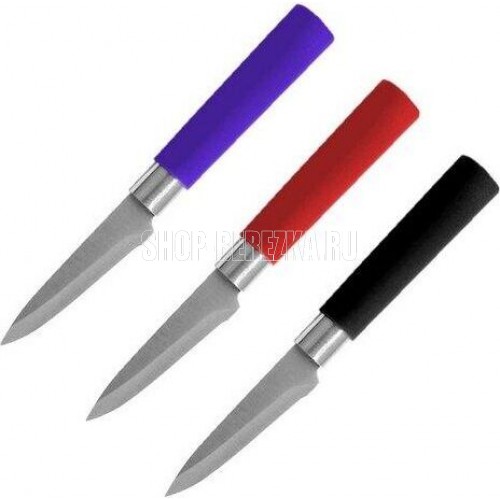 Длина лезвия: 9 см Толщина лезвия 1,5 мм Литая противоскользящая пластиковая ручка Материал: нержавеющая сталь (3CR13), пластмасса Упаковка: одинарный блистер