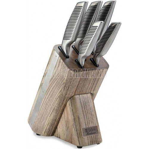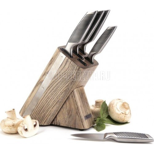 Набор ножей 6 пр. Hardman Состав: подставка из дерева ясеня, поварской нож 20,0 см — 1 шт, нож для нарезки 20,5 см — 1 шт, нож для хлеба 20,5 см — 1 шт, универсальный нож 12,0 см — 1 шт, нож для чистки 8,0 см — 1 шт., лезвия ножей выполнены из стали 3Cr1