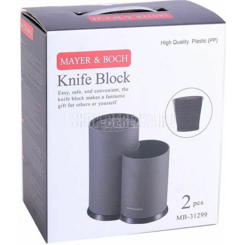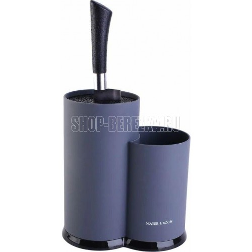 Универсальная подставка MAYER&BOCH позволит хранить ножи и ножницы любой формы, вне зависимости от их размера и лезвия. Корпус подставки выполнен из пластика, что делает ее гигиеничной и долговечной, а уникальный внутренний наполнитель состоит из тонких и гибких полипропиленовых стержней, которые легко моются. Полипропиленовые стержни наполнителя формируют структуру, подобную щетке, поэтому достаточно просто воткнуть нож в подставку, и она надежно удержит его. Полипропилен является экологически чистым материалом, устойчивым к истиранию, высокой температуре и химическому воздействию. Имеет два отсека: для ножей и столовых приборов. Подставка для ножей MAYER&BOCH станет прекрасным подарком, а ее яркий дизайн станет украшением Вашей кухни.