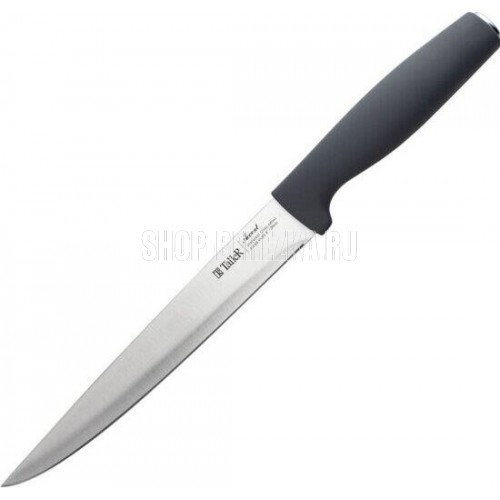 Нож для нарезки 20 см, толщина лезвия 1,7 мм Материал: нержавеющая сталь, пластик Рекомендуется ручная мойка Упаковка - блистер