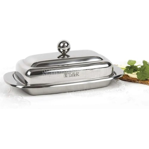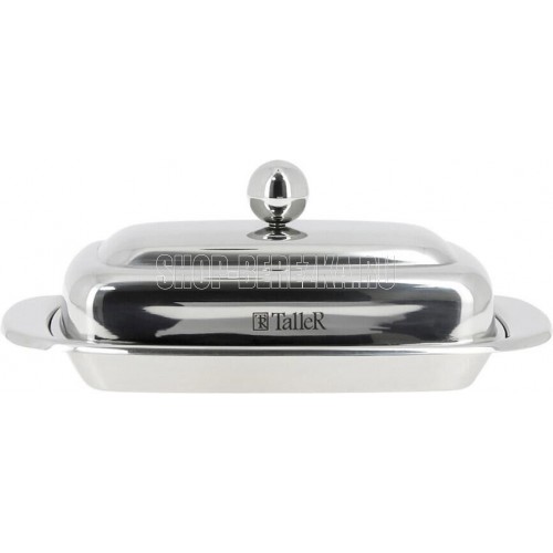 Масленка «Холли». Толщина стенок 0,5 мм. Объем 250г. Удобная ручка. Закругленные безопасные края. Полировка внешняя - зеркальная, внутренняя - матовая. Пригодна для мойки в посудомоечной машине. Упаковка - цветная коробка