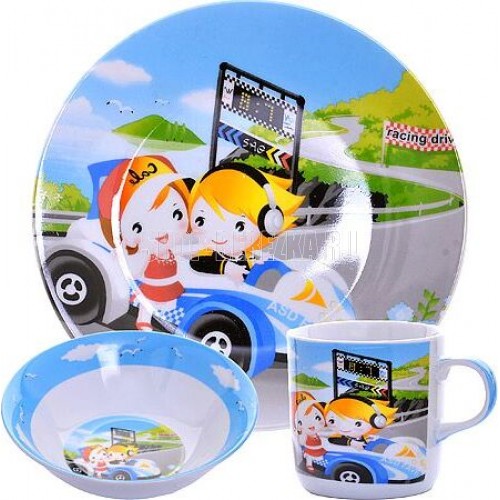 Предметы набора выполнены из высококачественной керамики и декорированы красочным рисунком. Изделия легкие и функциональные. Такой набор обязательно понравится вашему ребенку, потому что теперь у него будет своя собственная посуда с ярким и оригинальным рисунком. Набор посуды для детей включает в себя три предмета: суповую тарелку, обеденную тарелку и кружку. Набор упакован в красочную, подарочную упаковку. Подходит для мытья в посудомоечной машине. Для детей от 3-х лет.