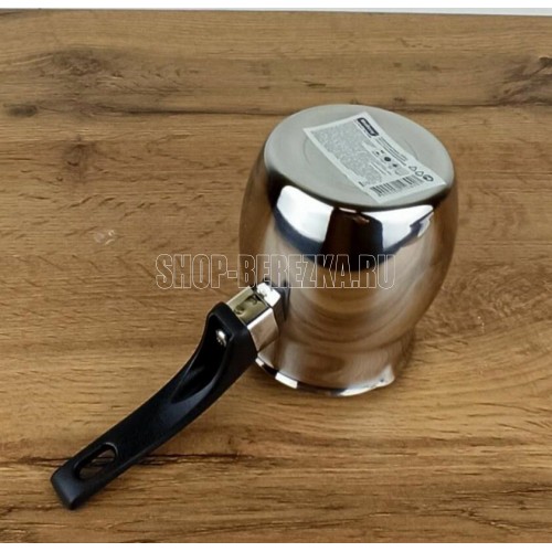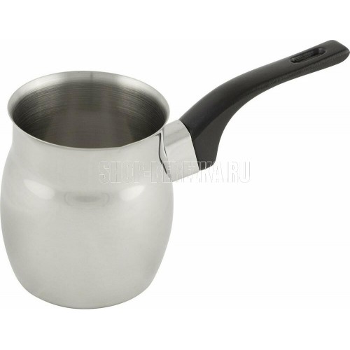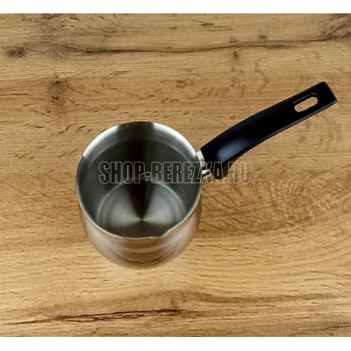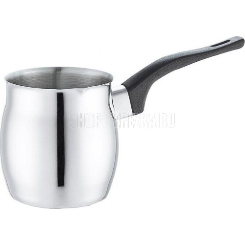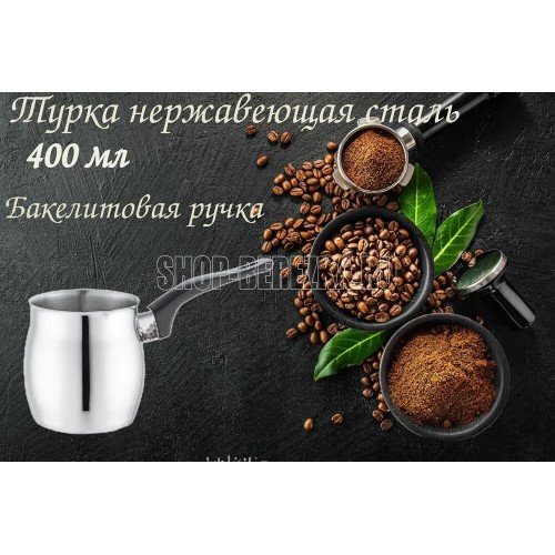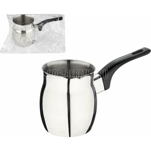 Кофеварка/турка TURCO из нерж стали с бакелитовой ручкой, объем 400 мл Нержавеющая сталь 201, бакелит. Толщина стенок - 0,5 мм, объем 400 мл, однослойное дно, подходит для индукции. Снаружи - зеркальная полировка, внутри матовая, без крышки, подупаковка по 6 шт в картонной коробке. упаковка - стикер + пакет. Не рекомендуется мыть в посудомоечной машине. Мыть теплой водой с мягким моющим средством.