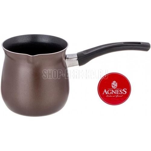 Турка ТМ "AGNESS" - ОТЛИЧНЫЙ ВЫБОР ПРИВЛЕКАТЕЛЬНЫЙ ДИЗАЙН служит украшением в интерьере Можно быстро приготовить ЛЮБИМЫЙ напиток, т.к. оптимальная ТЕПЛОПРОВОДНОСТЬ - обеспечивает равномерный нагрев. АНТИПРИГАРНОЕ покрытие защищает от пригорания. Ручка со специальным покрытием SOFT TOUCH очень приятна на ощупь. Ручка имеет ЭРГОНОМИЧУЮ форму, которая обеспечивает НАДЕЖНЫЙ захват и УДОБСТВО в использовании. ДОСТУПНАЯ ЦЕНА технология производства прессованного алюминия менее ресурсозатратна и дает возможность при необходимости легко заменить устаревшую продукцию на новую. ПРОСТОТА В УХОДЕ легко мыть и хранить Подходит для всех видов плит, кроме индукционных Материал корпуса - алюминий, толщина корпуса - 1,8 мм. ТМ "AGNESS" - ГОТОВЬТЕ С УДОВОЛЬСТВИЕМ