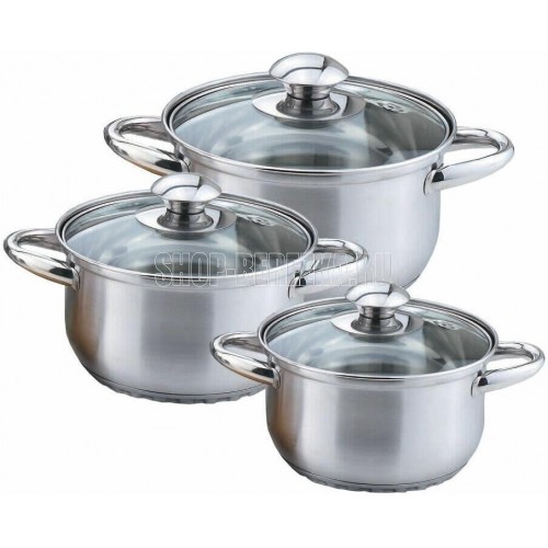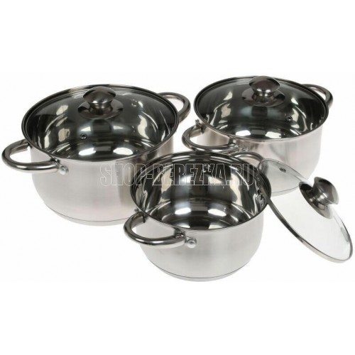 Набор из 6 предметов; Кастрюля, с жаропрочной стеклянной крышкой, 2л; Кастрюля с жаропрочной стеклянной крышкой, 2.6л; Кастрюля с жаропрочной стеклянной крышкой, 3.6л; Высококачественная нержавеющая сталь 18/10; 5-ти слойное капсульное дно.