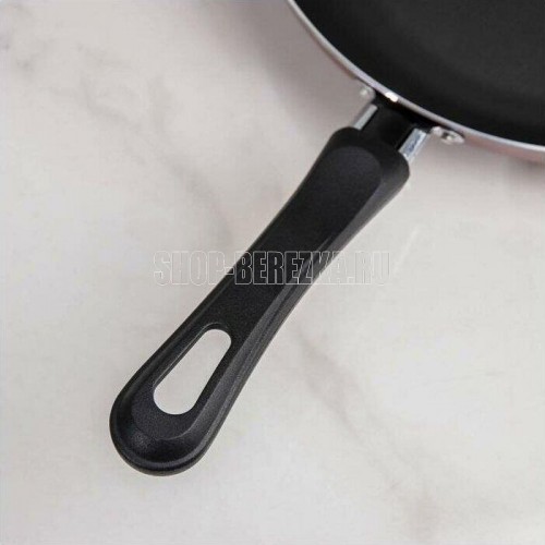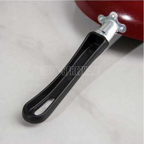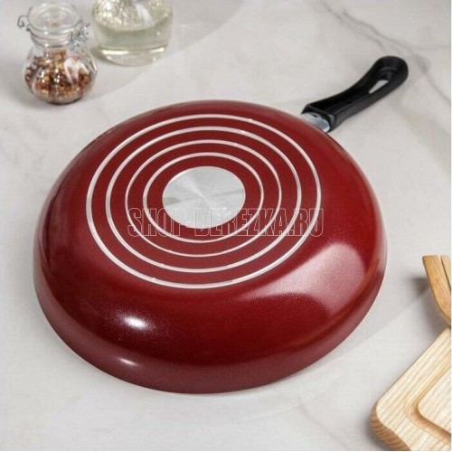 Диаметр 26см. Основание алюминий 1,8 мм. Внешнее покрытие декоративное, цвет- бордовый. Европейская фурнитура. Быстрый и равномерный нагрев. Высокие антипригарные свойства. Подходит для газовых плит, стеклокерамических плит и электроплит. Можно мыть в посудомоечной машине.