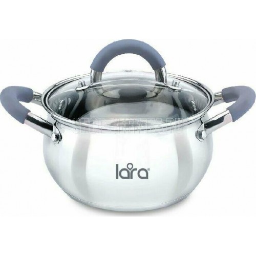 LR02-482 Кастрюля LARA (нерж) серия BELL 20x11,5см, 3,6л, капс. инд дно, силик. ручка, стекл. крышка