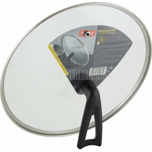Крышка G-type (закал. стекло) VETRO-SPECIAL Длина - 28 см, толщина стекла - 4 мм, материалы: крышка -закаленное стекло, нержавеющая сталь., ручка - бакелитовая. Упаковка: цветной рукав Крышка снабжена ненагревающейся бакелитовой ручкой уникальной формы, благодаря которой крышку можно вертикально ставить на стол,что позволит избежать загрязнение рабочей поверхностей стола. Крышка имеет отверстие для выхода пара и металлический ободок, который предохраняет крышку от механических повреждений. Крышка подходит для любой посуды диаметром 28 см.