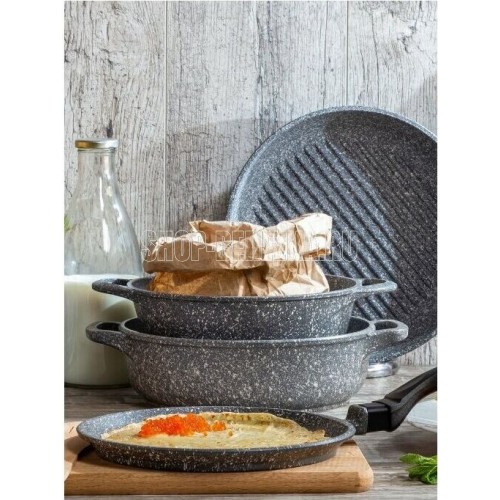 Объем, л./размер, см: 22 см Материал: литой алюминий Коллекция/серия: Мрамор Толщина дна: 4 Толщина стенок: 3 Источник тепла: Все виды плит, кроме индукционной Тип упаковки: цветной рукав Внутреннее покрытие: антипригарное покрытие Pfluon Внешнее покрытие: антипригарное покрытие Pfluon Ручка: бакелитовая