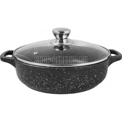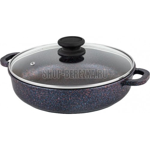 Жаровня а/пр литая 26см стекл/кр Сапфир ТМ Традиция, мраморное покрытие, изготовлена из литого алюминия толщина стенки- 4,0 мм; Толщина дна- 6 мм. Подходит для всех типов плит, кроме индукционных. Можно мыть в посудомоечной машине. Произведено в РОССИИ.