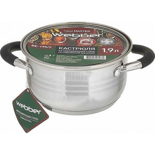 WEBBER BE-195/2 Параметры Объем 1,9 л Диаметр 16 см Высота 9 см Толщина стали 0,5 мм Описание Кастрюля из высококачественной нержавеющей стали Стеклянная крышка с отверстием для отвода пара Термосберегающее дно: пятислойное капсульное индукционное дно с повышенной термоотдачей Специальная форма, исключающая скопление остатков пищи и жира Быстрый нагрев пищи, длительное удержание тепла Для приготовления пищи достаточно небольшого количества воды и масла Минимальные потери минеральных веществ, витаминов и вкусовых качеств Может быть использована на всех типах кухонных плит, включая индукционные Подходит для мытья в посудомоечной машине