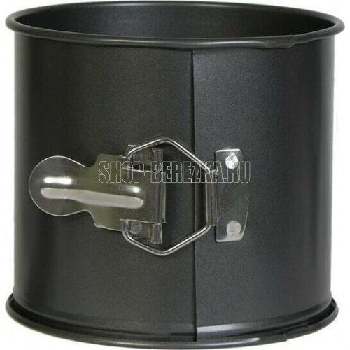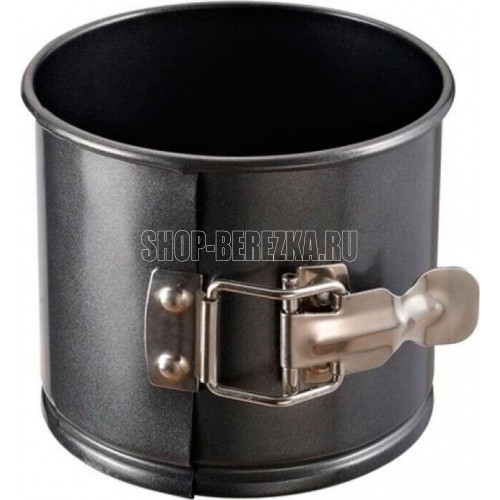 Форма разборная Материал — углеродистая сталь с антипригарным покрытием Цвет — серый (внутри-снаружи) Размер: диаметр 14 см * 12 см высота Упаковка: цветной вкладыш + пакет