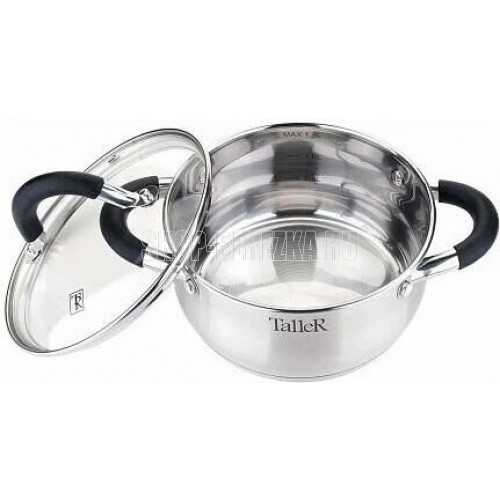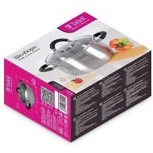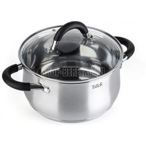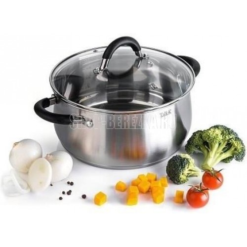 Кастрюля с крышкой "Шелборн", (3,2 л), 20*10,5 см Толщина стенки — 0,6мм. Толщина дна 2.8мм. Полировка внешняя — матовая, внутренняя — зеркальная. Крышка из жаропрочного стекла со стальным ободом с отверстием для выхода пара. Комбинированные ручки с силик