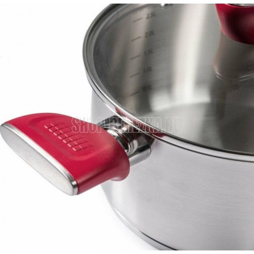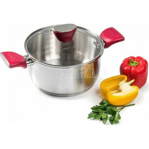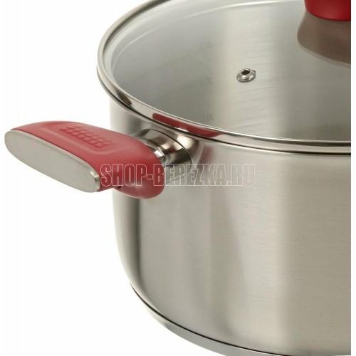 Кастрюля "Грейси" с крышкой 24 см, 5,3 л Толщина стенки — 0,5 мм. Толщина дна 4 мм. Внешний диаметр дна 21,8 см. Крышка из жаропрочного стекла со стальным ободом и отверстием для выхода пара. Бакелитовые ручки. Есть отметки литража. Рекомендации: нельзя