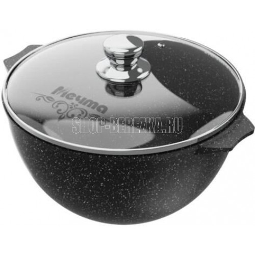 Казан для плова 8л с антипригарным покрытием и стеклянной крышкой серии "Гранит black" Подходит для всех типов плит, кроме индукционных. Можно использовать в посудомоечной машине.