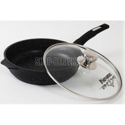 МЕЧТА С22802 Гранит black 22см несъемная ручка стеклянная крышка