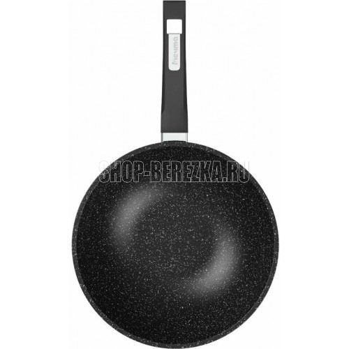 Сковорода ВОК 28см с антипригарным покрытием, несъемной ручкой и стеклянной крышкой серии "Гранит black". Подходит для всех типов плит, кроме индукционных. Можно использовать в посудомоечной машине.