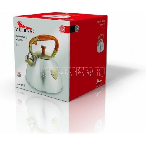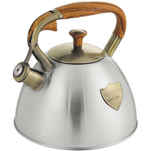 Чайник со свистком ZEIDAN Z-4466 3,0 л , Чайник со свистком, 3,0 л, нержавеющая сталь, капсулированное индукционное дно, курковый механизм, комбинированная ручка с покрытием "soft-touch" "под дерево", ДЕКОРАТИВНЫЕ ЭЛЕМЕНТЫ "ПОД БРОНЗУ". Подарочная упаковка.