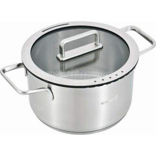 Кастрюля идет в индивидуальной коробке. Форма кастрюли - прямая форма, срезанный край с двумя заливными горловинами. Боковые ручки и ручкодержатель на крышке из нержавеющей стали,полые. Крышка из закаленного прозрачного стекла с двумя отверстиями для сита. корпус из нержавеющей стали 304 (18/8) толщиной 0,6 мм, дно: 1 мм Alu + 1 мм железо + 1 мм Alu + 18/0ss защитная пленка для дна индукционной плиты. Зеркальная полировка снаружи и внутри. Кастрюля предназначена для всех тип плит.