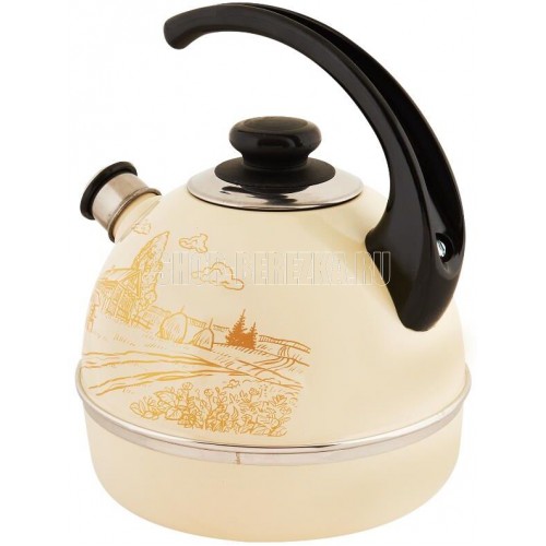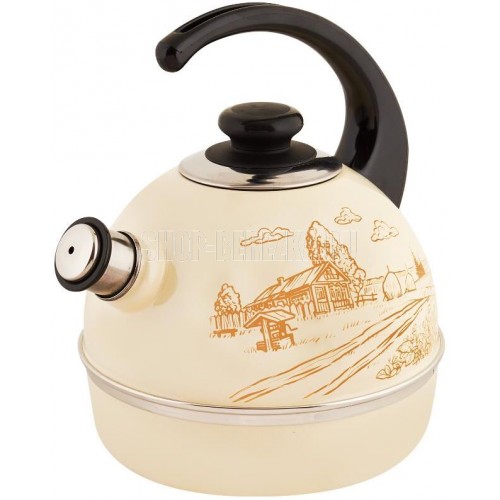 Чайник эмалированный со свистком. Объем (л) 4 л •Внешнее трехслойное эмалевое покрытие не вступает во взаимодействие с пищевыми продуктами, защищает сталь от коррозии, придает посуде гладкую стекловидную поверхность и надежно защищает от кислот и щелочей•Цвет эмали: белый, с деколью•Декор: нержавеющая сталь•Фиксированная консольная бакелитовая ручка•Свисток съемный из нержавеющей стали•Крышка плотно прилегает к краю•Может быть использован на всех типах кухонных плит: электрических, газовых, керамических, индукционных•Подходит для мытья в посудомоечной машине.