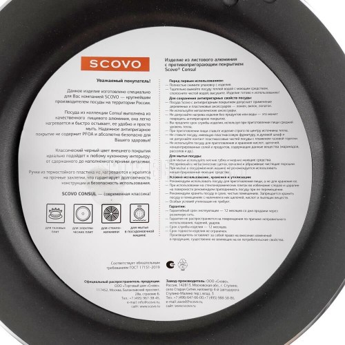 Объем, л./размер, см: 20 см Материал: штампованный алюминий Коллекция/серия: Consul Торговая марка: Scovo Толщина дна: 1.8 Толщина стенок: 1.8 Источник тепла: Газовая и электрическая плиты Тип упаковки: цветной лейбл Внутреннее покрытие: Deko Внешнее покрытие: Xylac Whitford