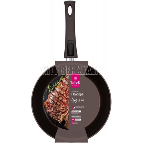 Сковорода Hygge, 24 см, с бакелитовой съемной ручкой. Материал: кованый алюминий, толщина дна 3,8 мм, толщина стенок 3,3 мм Высота 4,8 см внешний диаметр дна – 19.4 см Подходит для всех типов плит, включая индукционную. Рекомендовано ручное мытьё. Упаков