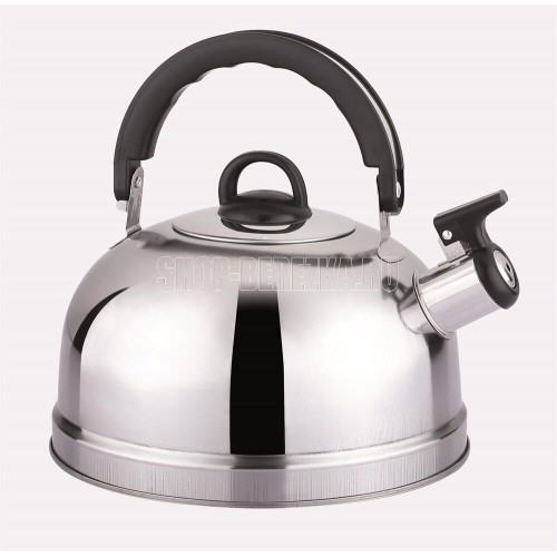 Объем, л./размер, см: 2.6 л Материал: нержавеющая сталь Торговая марка: Appetite Толщина дна: 0.5 Толщина стенок: 0.2 Источник тепла: Все виды плит Тип упаковки: цветная коробка Одинарное дно, черная бакелитовая ручка и кнопка, металлическая крышка. Свисток с пластиковым наконечником.