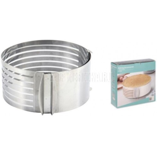 Высота борта: 8 см Размер : 16-22 см Толщина стали: 0,35 мм Материал: нержавеющая сталь (430) Упаковка: цветная коробка Развижная форма для выпечки с прорезями используется для выпекания и нарезки бисквита для коржей. С ее помощью можно приготовить бисквит диаметром от 16 до 22 см и нарезать коржи высотой 8-10 мм (до 7 штук). Форма полностью разъемная, что позволяет аккуратно убрать ее после нарезки, не повредив коржи. Форма изготовлена из высококачественной нержавеющей стали. Материал не токсичен, не впитывает запахи, устойчив к высоким и низким температурам, подходит для мытья в посудомоечной машине. Рекомендации по использованию: - Перед первым применением рекомендуется помыть форму в теплой воде мягкой губкой с использованием моющего средства. - Перед нарезкой бисквит рекомендуется полностью остудить. - Лезвие ножа должно быть длиннее диаметра формы. - Сначала бисквит через прорези нарезается до середины с одной стороны, затем форму нужно повернуть и нарезать с другой стороны.