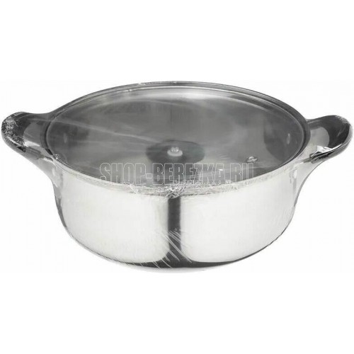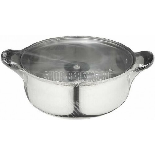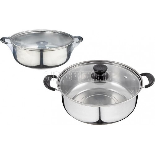 БЕЗ ТМ Кастрюля Promo, объем 5,5 л, из нержавеющей стали с крышкой из жаропрочного стекла (104617)