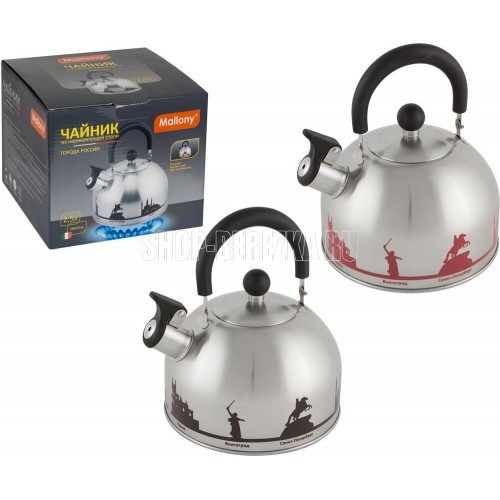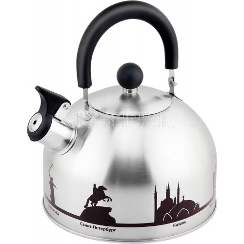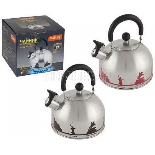 Благодаря серебристому стильному корпусу чайник смотрится эстетично на любой кухне. Изделие вмещает в себя 2.5 л, имеет высокопрочный корпус, материалом изготовления которого послужила нержавеющая сталь. Чайник оснащен эргономичной пластиковой ручкой, которая выдерживает высокую температуру и не нагревается. Дополнительным устройством в его конструкции является свисток, который сообщит о готовности воды. Энергосберегающее дно будет поддерживать температуру, благодаря чему вода не остынет достаточно долго.