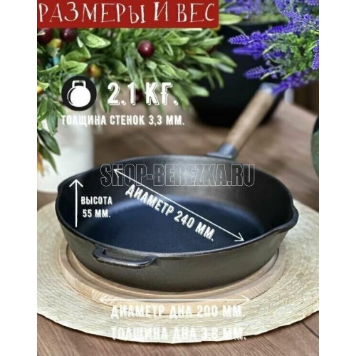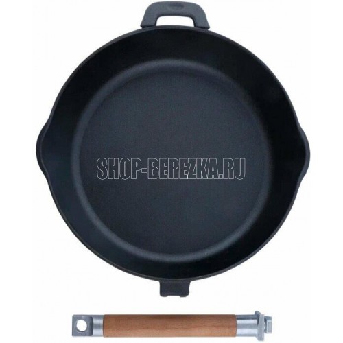 РОССИЯ 0224 Сковорода чугунная с двумя сливами, 24 см, со съёмной ручкой