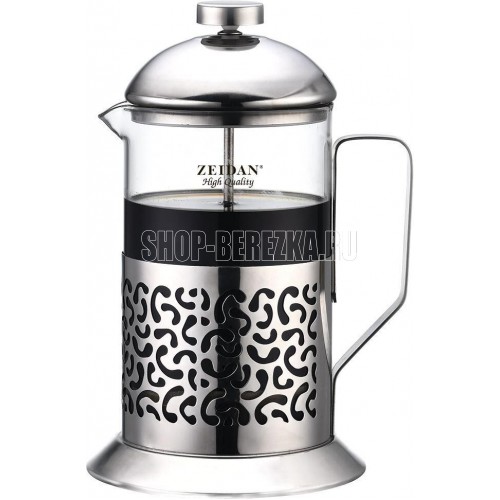 Френч-пресс ZEIDAN Z-4419 800 мл, Френч-пресс 800 мл, КОРПУС - НЕРЖАВЕЮЩАЯ СТАЛЬ, термостойкое стекло, подарочная упаковка.