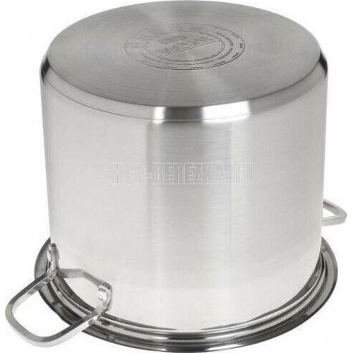 Объем: 17 л. Диаметр: 30 см. Высота: 24 см. Толщина стали: 0,6 мм. Кастрюля из высококачественной нержавеющей стали. Стеклянная крышка с отверстием для отвода пара. Термосберегающее дно: трехслойное капсулированное дно с повышенной термоотдачей. Внутренняя мерная шкала. Стальные клепаные ручки. Специальная форма, исключающая скопление остатков пищи и жира. Для приготовления пищи достаточно небольшого количества воды и масла. Минимальные потери минеральных веществ, витаминов и вкусовых качеств. Может быть использована на всех типах кухонных плит, включая индукционные. Подходит для мытья в посудомоечной машине.