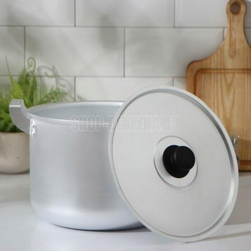 Вид продукции Кастрюли Диаметр, см 24 Высота, см 18,4 Толщина, мм 1,8 Литраж, л 8 Категория Матовая посуда Кастрюля с металлической крышкой и двумя металлическими ручками на 8,0 литров изготовлена из чистого пищевого алюминия методом штамповки. Основные характеристики такой посуды: легкость, прочность, быстрый нагрев, безопасность и доступность.