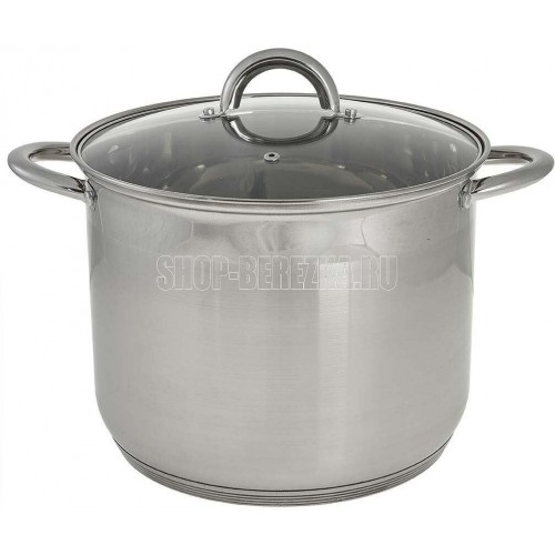 Объем 10 л Диаметр 24 см Высота 21 см Толщина стенок 0,5 мм,толщина дна 2,5 мм Кастрюля из высококачественной нержавеющей стали(SS201) Стеклянная крышка с отверстием для отвода пара Термосберегающее дно: пятислойное капсулированное дно с повышенной термоотдачей Стальные клепаные ручки Может быть использована на всех типах кухонных плит, включая индукционные Подходит для мытья в посудомоечной машине Упаковка: воздушно-пузырчатая пленка