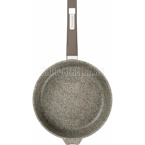 Сковорода 20 см c антипригарным покрытием, несъемной ручкой серии "Premium" цвет mokko. Подходит для всех типов плит, кроме индукционных. Можно использовать в посудомоечной машине.