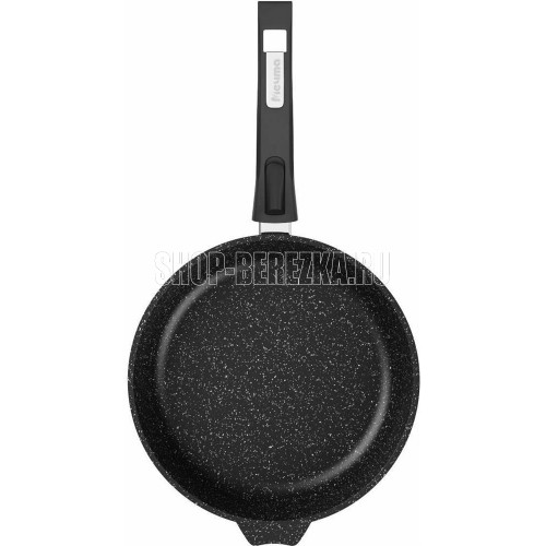 Сковорода 22см с антипригарным покрынием и съемной ручкой серии "Гранит black" Подходит для всех типов плит, кроме индукционных. Можно использовать в посудомоечной машине. Можно использовать в духовке отдельно без ручки.