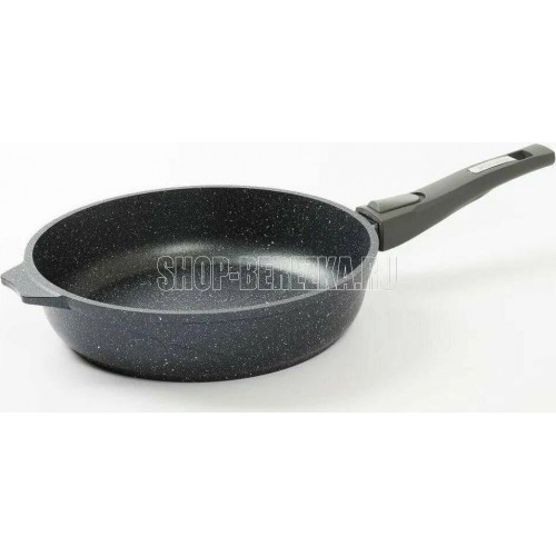 Сковорода 30см. с антипригарным покрынием и съемной ручкой серии "Гранит" Подходит для всех типов плит, кроме индукционных. Можно использовать в посудомоечной машине. Можно использовать в духовке отдельно без ручки.
