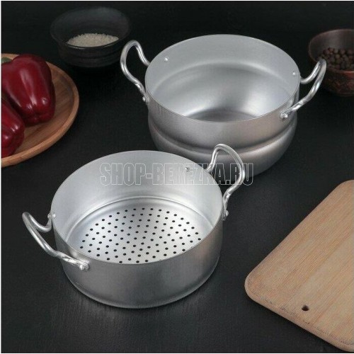 Диаметр, см 18 Высота, см 16,5 Толщина, мм 1,2 - 1,5 Литраж, л 2,5 КатегорияМатовая посуда Пароварка со съемной сеткой предназначена для приготовления пищи на пару и незаменима для людей, которым требуются особые условия приготовления пищи.