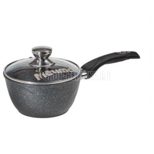 Ковш 1.7л c антипригарным покрытием, несъемной ручкой и стеклянной крышкой серии "Гранит star". Подходит для всех типов плит, кроме индукционных. Можно использовать в посудомоечной машине.