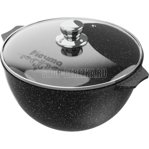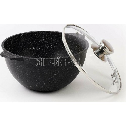 Казан для плова 4л с антипригарным покрытием и стеклянной крышкой серии "Гранит black" Подходит для всех типов плит, кроме индукционных. Можно использовать в посудомоечной машине.