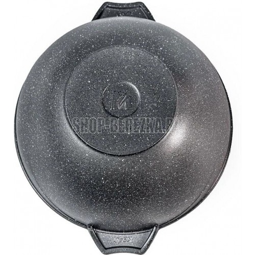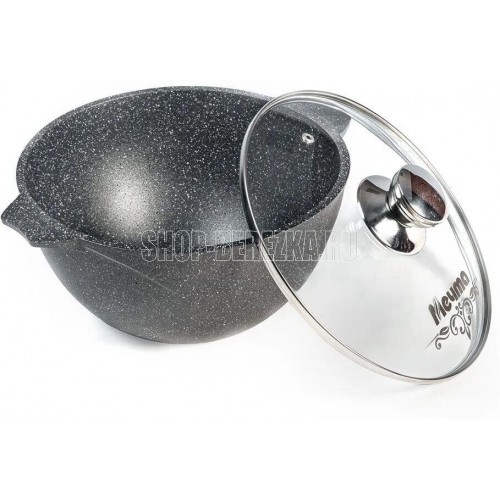 Казан для плова 8л с антипригарным покрытием и стеклянной крышкой серии "Гранит" Подходит для всех типов плит, кроме индукционных. Можно использовать в посудомоечной машине.