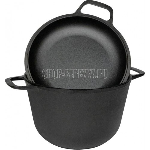 Чугунная кастрюля с чугунной крышкой-сковородой объёмом 6 литров – дополнение к современной кухне. Для любителей тушеных, жареных и запеченых блюд идеальный вариант — чугунная кастрюля, поскольку именно благодаря толстым стенкам при тушении сохраняется всё вкусовое богатство и пикантный аромат блюда. За счет того, что чугун имеет повышенную теплоемкость, он долго сохраняет жар после приготовления, что дает возможность блюдам раскрыться и дойти в режиме томления. В кастрюле также отлично получатся такие блюда как: шурпа, харчо, жаркое, плов и лагман. Чугунная кастрюля в комплекте с чугунной крышкой-сковородой 2 в 1. Подходит для всех типов плит.